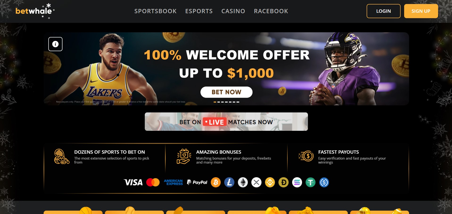 Banking at BetWhale combines traditional and digital methods. Players can usually deposit with Visa or Mastercard, several cryptocurrencies like Bitcoin or Tether, and popular prepaid vouchers. Crypto withdrawals are generally the quickest, while bank wires and checks may involve higher limits and processing fees. Registration is quick, with a short sign up form, email verification and instant access to both sportsbook and casino sections once the account is active.